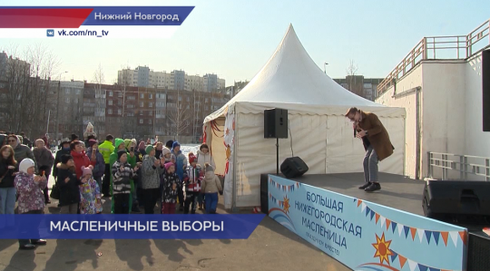 А вот так масленичные гуляния у избирательного участка проходят в Арзамасе. Вот так - в Калинихе, что на Ветлуге. Это – Выкса, а это посёлок им. Тимирязева в Городецком округе. Попасть на масленицу, придя на голосование, можно было на 188 площадках в столице Приволжья и 100 - в 48 районах области.
