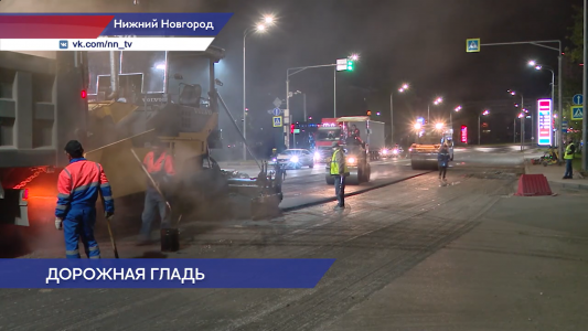 В Нижнем Новгороде идёт ямочный ремонт. Дорожники применяют разные методы укладки асфальта. Ямочный ремонт идёт в круглосуточном режиме.