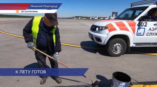 На аэродроме международного аэропорта Нижнего Новгорода имени Чкалова наносят новую разметку. Делать это важно – по сути, разметка позволяет координировать работу и пилотов, идущих на посадку, и экипажа на земле.