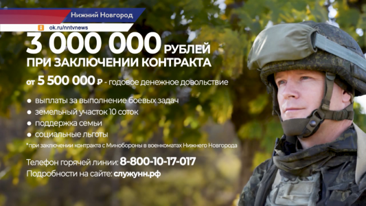 Государство оказывает бойцам всестороннюю поддержку — с 5 ноября увеличена суммарная единовременная выплата при условии заключения контракта с Минобороны РФ в военкоматах Нижнего Новгорода.
