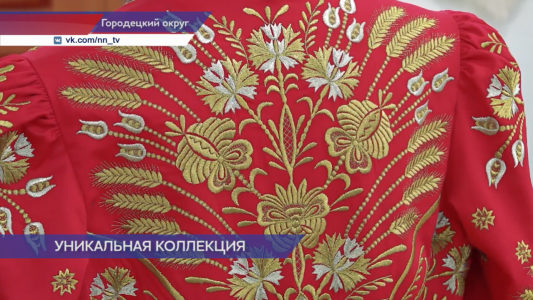 Нежные цветы, изящные листья и причудливые стебли — всё это оживает, сплетаясь в единое, завораживающее полотно. Городецкие рукодельницы создали уникальную коллекцию костюмов в технике золотной вышивки. Всего — 22 комплекта одежды, на создание которых потребовался почти год. Совсем скоро они украсят выступления коллектива под руководством народной артистки Надежды Бабкиной. Коллекция зимняя: кафтаны у мужчин и женские коротёны расшиты золотом и оторочены мехом. Ну а самым трудоёмким оказался костюм для самой Надежды Бабкиной. Рукодельницы вручную пришили три с половиной тысячи жемчужин, страз и пайеток.