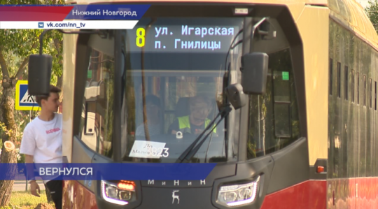 На маршруте восьмёрки сейчас работают восемь трамваев с интервалом движения не более 10 минут.