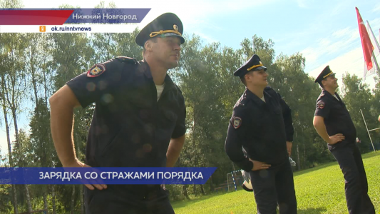 Весело и энергично участники 3-й смены городского оздоровительного лагеря «Чайка» проводили зарядку. Инициатива — Общественного совета при ГУ МВД России по Нижегородской области.