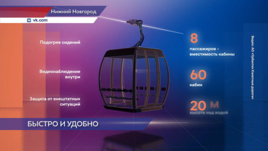 Ежедневно канатная дорога сможет пропускать 10 000 пассажиров, а это поможет минимизировать пробки на дорогах. Общая протяжённость трассы — более 3 километров с панорамными видами на оба берега Оки. Пассажирские кабины планируется сделать максимально комфортными в любое время года.