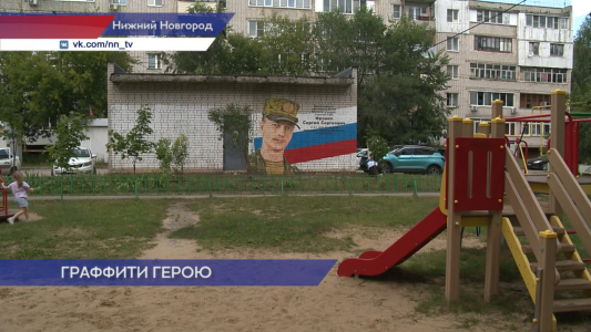 На торжественном открытии памятного граффити присутствовали глава Сормовского района, родители и супруга бойца.