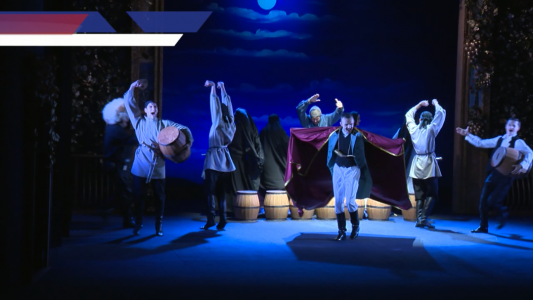 Колоритно и зажигательно. Так начинается премьера спектакля «Ханума». Князь Вано разорён. Он мечтает о богатой невесте. Две свахи: Кабато и Ханума нашли уже для князя прекрасных невест с богатым приданным, одна краше другой.