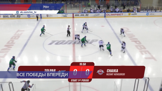 Первый матч в Уфе против «Толпара» хоккеисты «Чайки» начали очень активно. При равной игре обе команды имели шансы на взятие ворот, но первыми смогли отличиться хозяева.