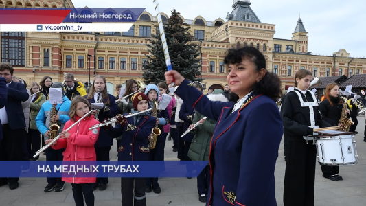 Вместе с Дзержинским оркестром на гала-концерте конкурса «Под звуки духового оркестра» выступают 17 коллективов. Это более 600 человек из Нижегородской области, Владимира, Москвы, Донецкой Народной Республики и Беларуси. Все они объединились на площади главного Ярмарочного дома, чтобы в унисон исполнить песню «День Победы».