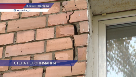 Рассказывает: началось всё с разрушения кирпичей в 2022, в 2023 появилась трещина. А в мае этого, добавляет, во время шквального ливня даже протекла стена.