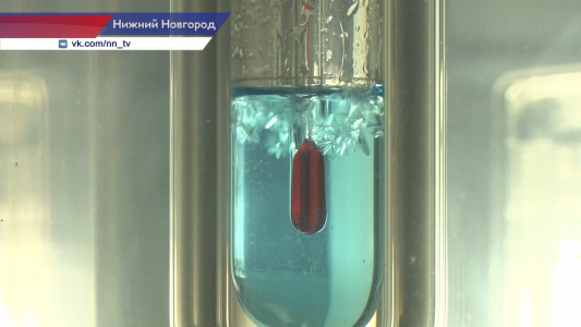 «Сегодня мы проводили испытание, как стеклоомывающая жидкость ведёт себя при минусовых температурах. Это очень важно для автомобилей — в бачке может образоваться кристалл, который в дальнейшем закристаллизует всю незамерзайку и не даст разбрызгивать её на лобовое стекло, так как это может привести к плачевным последствиям. Данное исследование проводится в охлаждающей бане: то есть мы опускаем жидкость в пробирке с двойным дном, с термометром на минусовые температуры, в охлаждающую баню и смотрим, когда образуются первые кристаллы».