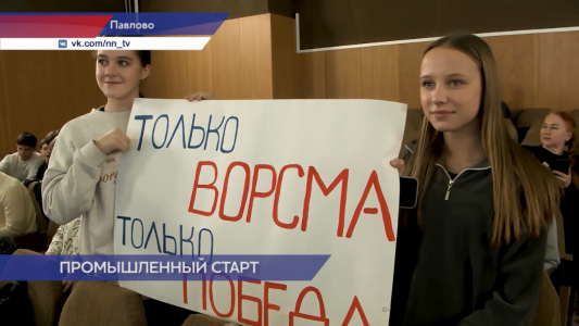 С плакатами и флажками в руках. Поддержка команд креативная и яркая. Почти 100 школьников — участники форума «Взлёт. Промышленный старт». И до того, как всем встретиться в этом зале, ребята посещали промышленные предприятия Павловского округа. Сейчас их задача — кратко рассказать зрителям о каждом заводе.