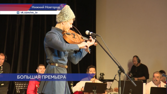 На сцене Нижегородской филармонии имени Мстислава Ростроповича — Фёдор Скунцев из группы «Таран». Яркий представитель казачьей культуры, лауреат всероссийских конкурсов. Здесь же и Нижегородский ансамбль народной песни «Рэтра-Ф».