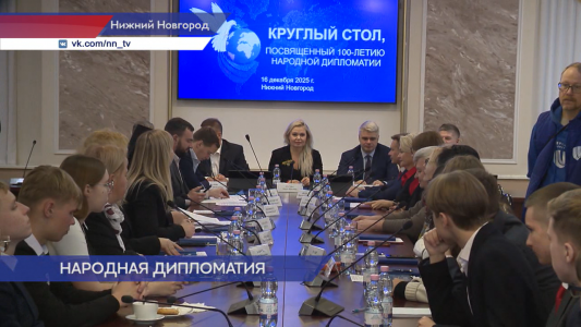 Круглый стол в честь 100-летия народной дипломатии состоялся в Нижнем Новгороде. Нижегородская область — единственный регион России, который системно занимается народной дипломатией при сотрудничестве правительства области и Национального центра народной дипломатии ШОС.