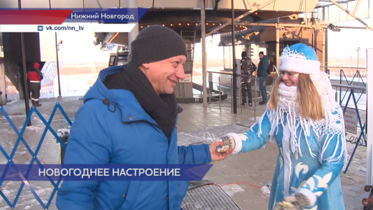Дед Мороз и Снегурочка встречают нижегородцев и гостей города на канатной дороге. На станции «Нижегородская» пассажирам вручают сладкие подарки, те в ответ читают стихи, поют песни и водят хороводы вместе с главными героями Нового года.
