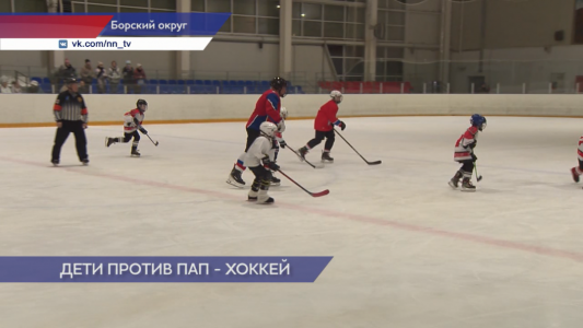 Дед Мороз и Снегурочка стали свидетелями хоккейной дуэли. На льду борской Красной горки юные, но уже умеющие играть в хоккей, сыновья экзаменовали своих пап. Для Дмитрия Абрамова битва на льду была впервые.