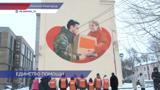 Новый мурал посвящён работе волонтёров, помогающих участникам СВО, а также добровольцам движения #МЫВМЕСТЕ.