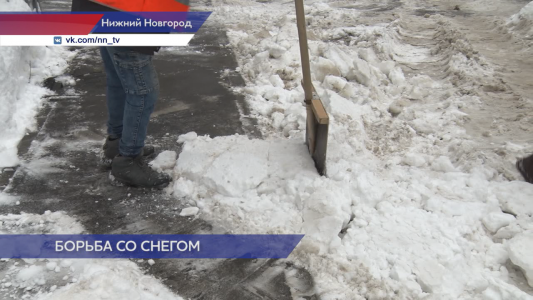 Уборку снега в Нижегородском районе проверили специалисты госжилинспекции. На улице Усилова у домов №9 и №10 задействованы снегоуборочный трактор и большегруз для вывоза снежных масс.