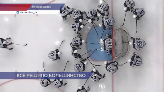 Игра в неравных составах стала ключевой в поединке нижнекамского «Реактора» и нижегородской «Чайки». Гости в середине первого периода забивают в большинстве – успех празднует Ян Мельников, в касание справа завершив изящную комбинацию своего звена.