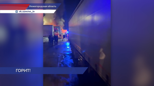Крупный пожар вспыхнул на трассе М-7 в Нижегородской области. В ночь с 16 на 17 марта на стоянке в Дзержинске на Московском шоссе загорелись сразу шесть фур. Огонь, предположительно, начался из-за короткого замыкания в одном из автомобилей и быстро перекинулся на соседние машины.