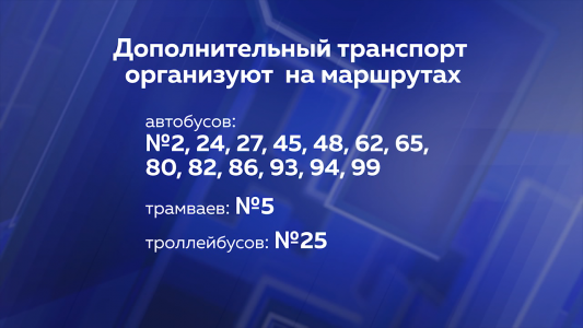 Усилят автобусами более 30 маршрутов, добавят трамваев на маршруте № 5 и троллейбусов на 25-м маршруте.