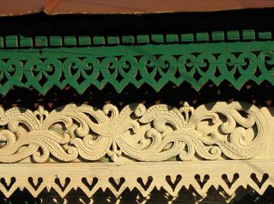 фронтоны и наличники разнообразными ажурными узорами. Резчики были мастерами