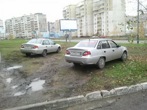 В городе стартовал рейд по выявлению автовладельцев, которые паркуют свои машины на газонах и территориях стройплощадок
