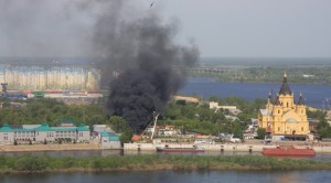 Сильный пожар произошел сегодня днем на Стрелке в районе регионального Управления ГИБДД16.05.2012  14:35  — ННТВ  главная новость