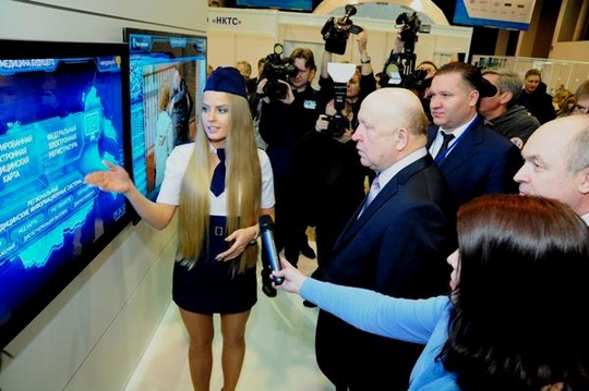 Антон Ганин, корреспондент: «Лично мне на IT-форуме больше всего понравилась эта девушка Это виртуальный консультант, которого можно использовать например в качестве учителя, хостес в ресторане или даже стюардессы в самолете. Здесь же девушка Наташа рассказывает о безопасном интернете».