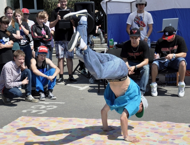 Брейк-данс, хип-хоп и битбокс... Прямо у дверей администрации района собрались около четырехсот человек. Возраст участников - от четырех до двадцати пяти лет.