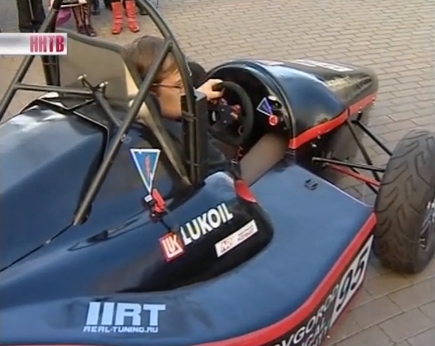 Увидеть гоночный болид в простом школьном дворе - необычно. Его привезли на конкурс нижегородские студенты политехнического университета. Мощность этого болида 117 лошадиных сил, движок студенты позаимствовали у спортбайка. Скорость машина развивает нешуточную по меркам самодельной машины - более 160 километров в час. В сентябре этого года нижегородцы участвовали в итальянских гонках среди непрофессионалов, заняли 20 место.