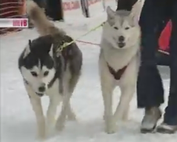 Кстати, зрителей тут ничуть не меньше участников. Они тут выступают в роли фотомоделей - каждый хочет сфотографироваться с собакой своей любимой породы. А вот щенки хаски пытаются учится у своих старших братьев. Значит, вот так нужно драться, да? Ну, а в самом углу разминаются суровые маламуты. И им здесь лучше не мешать. Не поздоровиться даже самым маленьким.