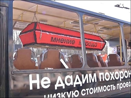 Чёрный ПАЗик с гробом внутри проехал по городу в знак протеста02.05.2014  09:50  — Гипорт.РФ