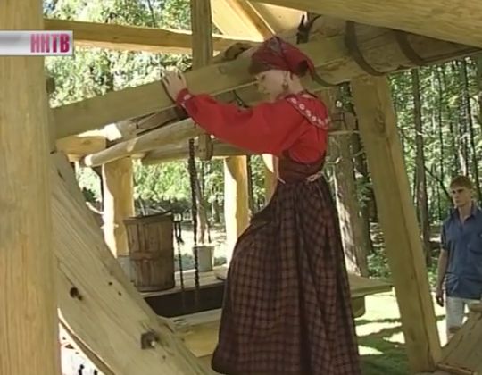 Как белка в колесе. Этот - ступневой колодец, единственный в мире с таким большим диаметром колеса - 4,5 метра. Открывают, как и принято - торжественно. Уникальное инженерное решение позапрошлого века. В Щелоковский музей заповедник его привезли в середине 70-х из Городецкого района, как очередной экспонат народной архитектуры Поволжья. Вопрос его восстановления стоял давно - последние несколько лет колодец разрушался. Критическим моментом, когда уже тянуть было некуда, стала рухнувшая крыша, надломились балки. Стали срочно искать деньги на реставрацию и мастеров. Тогда в XIX веке умельцы строили колодец самыми простейшими инструментами - топором, молотком, рубанком, а сейчас, когда есть всевозможные специальные механические приспособления, это было задачей на грани невыполнимого.
